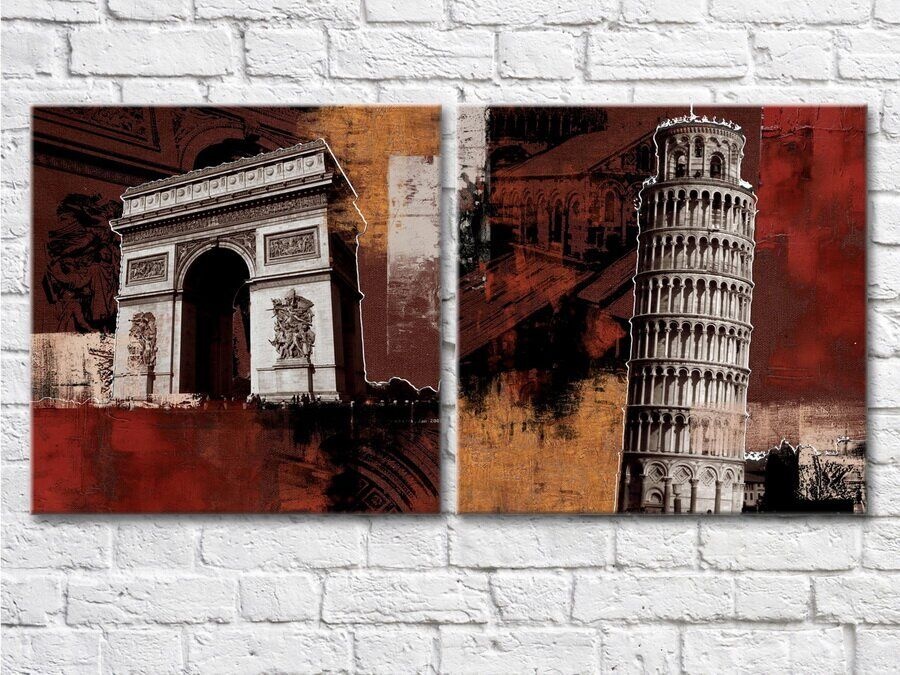 Pictură ArtPoster Building Big Ben Tower of Pisa Arc de Triomphe 1 (2495209)