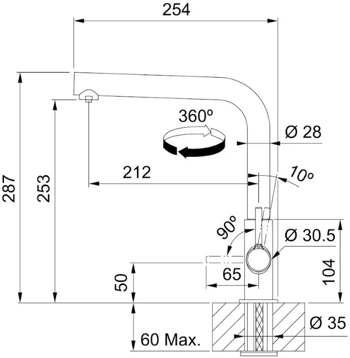 Înălțime pipă253 mm
