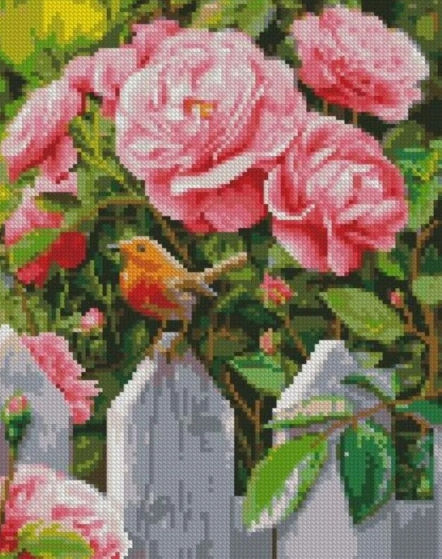 Pictura cu diamante după numere Strateg Птичка у роз (HX416)