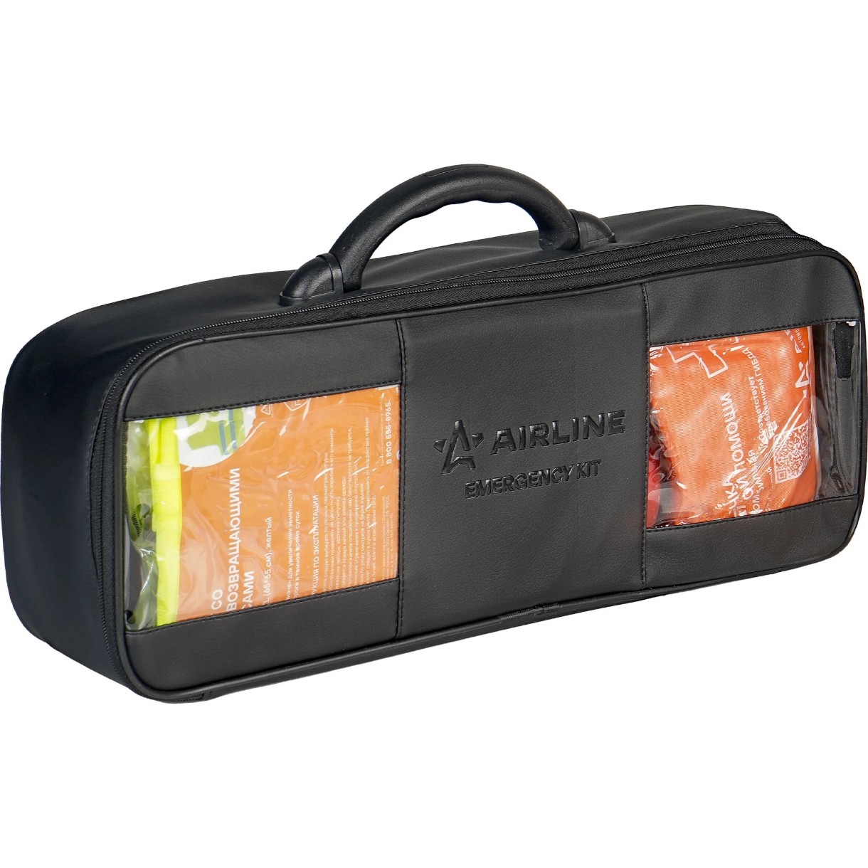 Setul de automobilist Airline Premium ANA-04 este necesar fiecărui șofer pentru a asigura trecerea garantată a inspecției tehnice a vehiculului, precum și în cazul apariției unor situații de urgență neprevăzute pe drum. Setul de automobilist "Premium" este echipat cu elemente suplimentare, printre care: un extinctor, un semn de oprire de urgență, o vestă reflectorizantă, precum și alte mijloace de acordare a primului ajutor tehnic și de reparație.