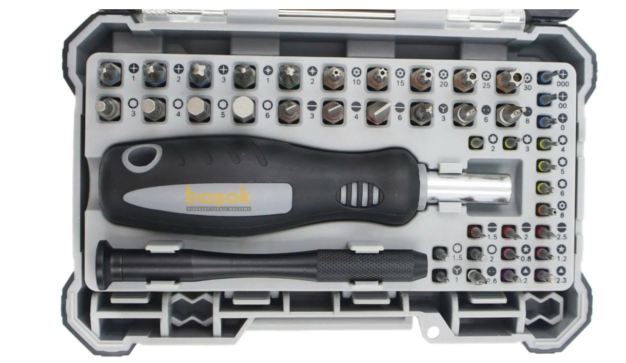 Tip de bițiPH000,PH00,PH0, SL1.5,SL2,SL2.5, T2,T3,T4,T5,T6, TH10,TH15,TH20,TH25,TH30, Hex3,Hex4,Hex5,Hex6, PH1,PH2,PH3, SL3,SL4,SL5, PZ1,PZ2, U6,U8, Y3