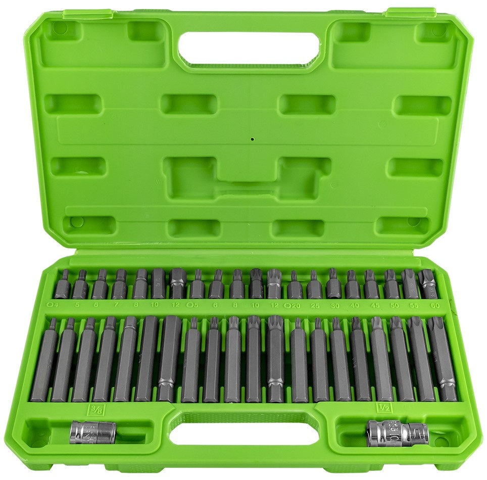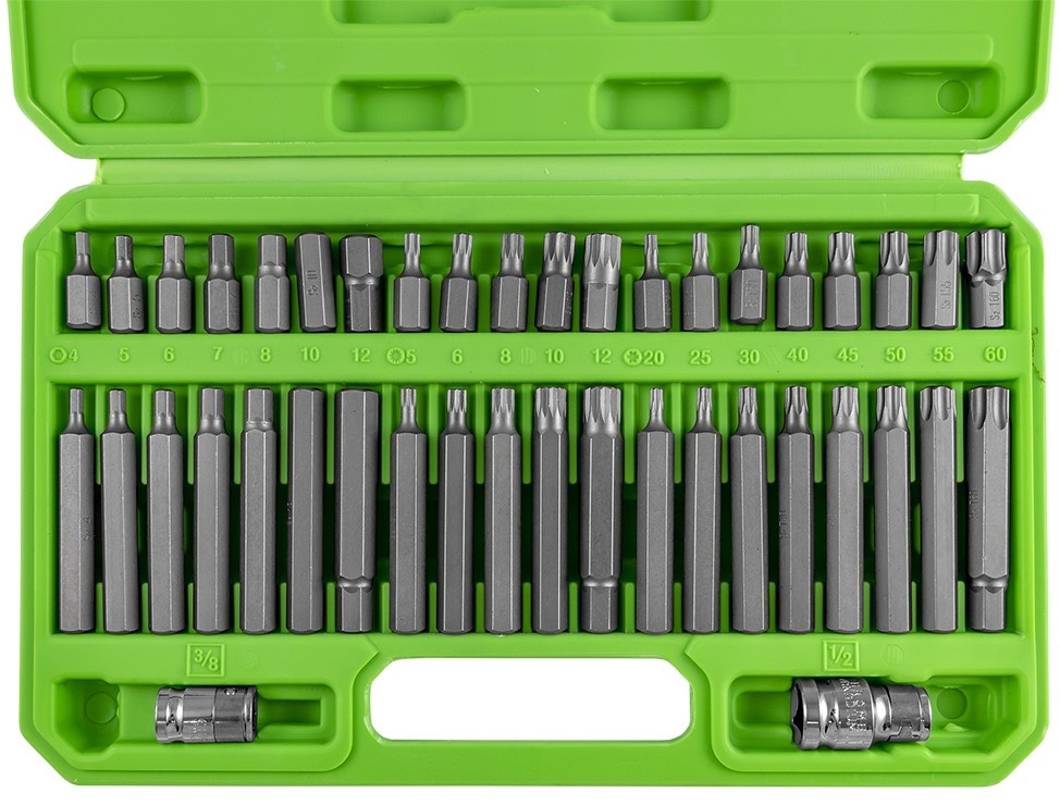 Tip de biți4, 5, 6, 7, 8, 10, 12 (30mm) 4, 5, 6, 7, 8, 10, 12 (75mm) T20, T25, T30, T40, T40, T45, T50, T55, T60 (30mm) T20, T25, T30, T40, T40, T45, T50, T55, T60 (75mm) M5, M6, M8, MIO, M12 (30mm) M5, M6, M8, MIO, M12 (75mm)