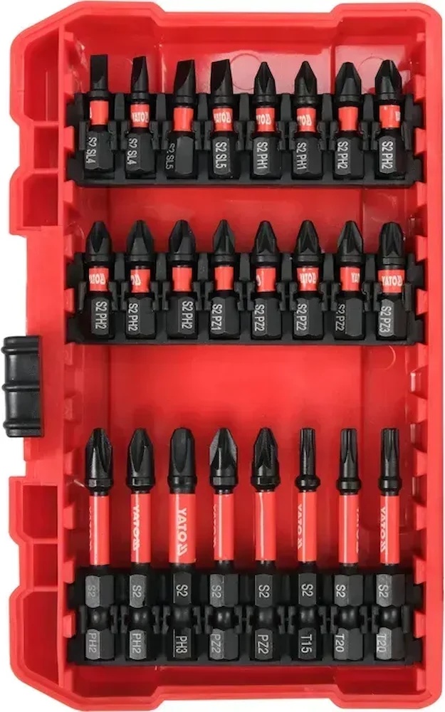Tip de biți25 mm: SL4, SL4, SL5, SL5, PZ1, PZ2, PZ2, PZ2, PZ3, PZ3, T10, T10, T15, T15, T15, T20, T20, PH1, PH1, PH2, PH2, PH2, PH2, PH2 / 50 mm: SL4, PZ2, PZ2, T15, T20, T20, PH2, PH2, PH3