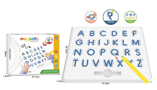 Creează o lume a creativității și învățării cu tablă noastră de litere magnetică! Această tablă este instrumentul perfect pentru dezvoltarea vorbirii și scrierii la copii. Include litere magnetice colorate, care se atașează ușor de suprafață, permițând celor mici să experimenteze cu formarea de cuvinte și fraze.