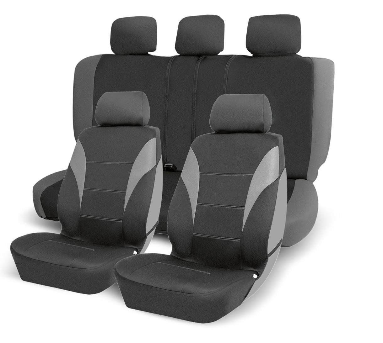 In set2 spătare față, 2 scaune față, 1 spătar spate modular, 1 scaun spate, 5 huse pentru cap