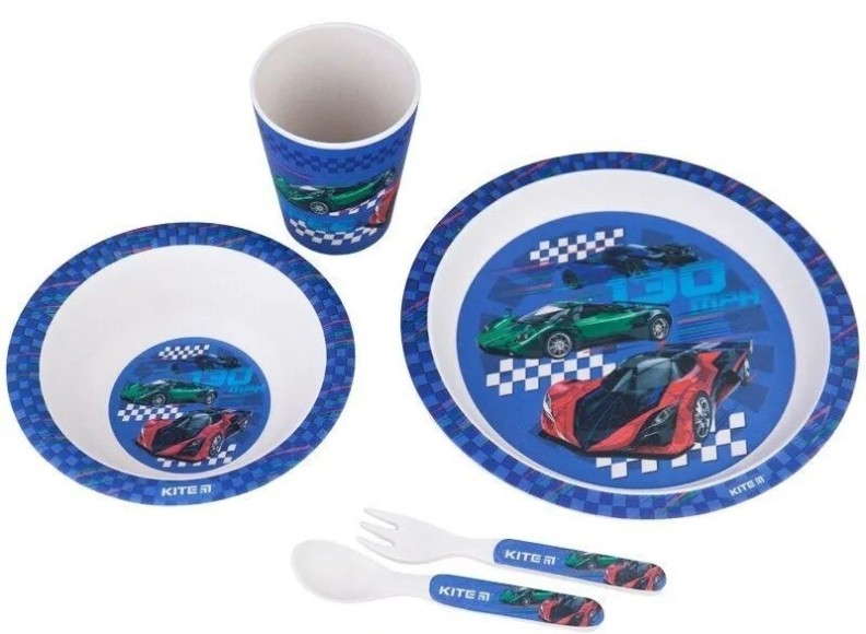 - Setul constă din cinci piese: farfurii adânci și plate, cană, lingură și furculiță.