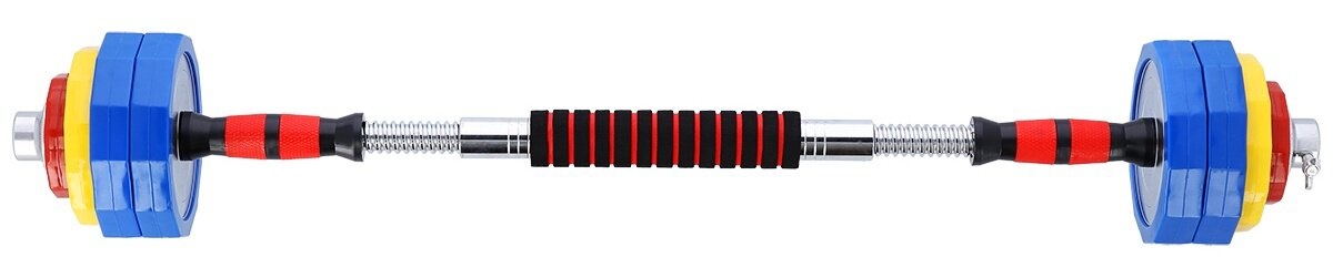 Oțelul cromat de înaltă calitate garantează o rezistență ridicată, ceea ce înseamnă că echipamentul poate fi folosit mulți ani. În plus, oțelul este acoperit cu material PVC, care îl protejează suplimentar și, în același timp, absoarbe eventualele impacturi. Clemele și diametrul perfect adaptat al orificiului discului facilitează schimbarea rapidă a sarcinii și, în același timp, poziționarea sigură și stabilă pe tijă. Clemele sunt filetate, dar au o întărire suplimentară sub forma unui șurub strâns. Datorită acestui fapt, sarcina nu se schimbă în niciun fel în timpul exercițiului.