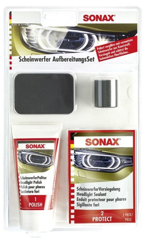 Set complet gata de utilizare pentru curățarea, lustruirea și protejarea farurilor SONAX HeadLight Restoration Kit 405941 vă va ajuta să curățați complet, să lustruiți și să protejați farurile, plasticul și stopurile din spate. Veți scăpa de depunerile de nisip, murdărie, îngălbenire și veți obține transparență.
