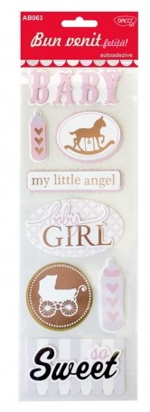 Setul contine: abtibilduri care te pot ajuta la crearea unui aranjament special pentru un botez, la care sarbatoritul este ... o fetita!