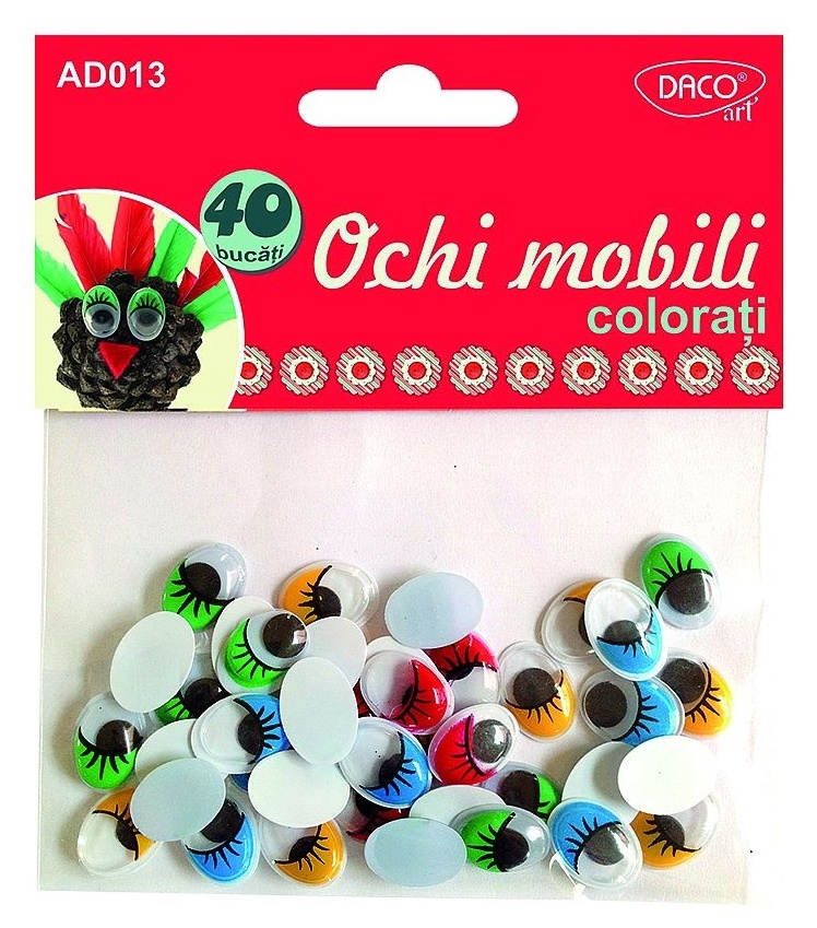 Setul contine 40 de bucati ochi mobili colorati din plastic.