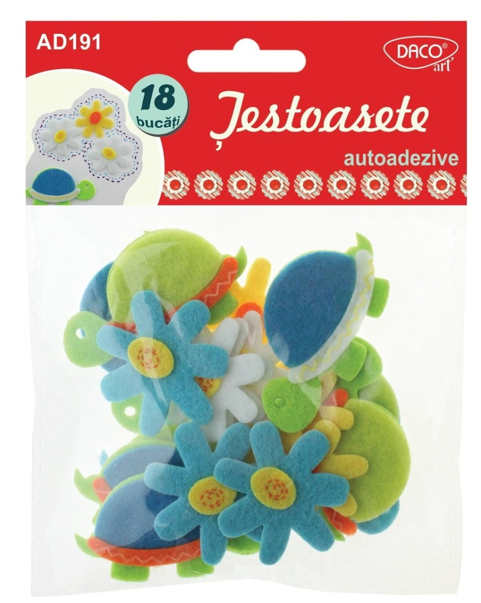 Figurine din fetru autoadezive: flori și țestoase.