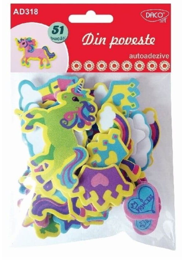 Punem la dispozitie forme autoadezive DACO, din spuma, dimensiuni variabile, model Personaje Poveste, multicolor. Produsul este disponibil la set de 51 de bucati si se recomanda pentru diferite activitati creative (scoala, gradinita), cadouri hand-made, produse personalizate, etc.