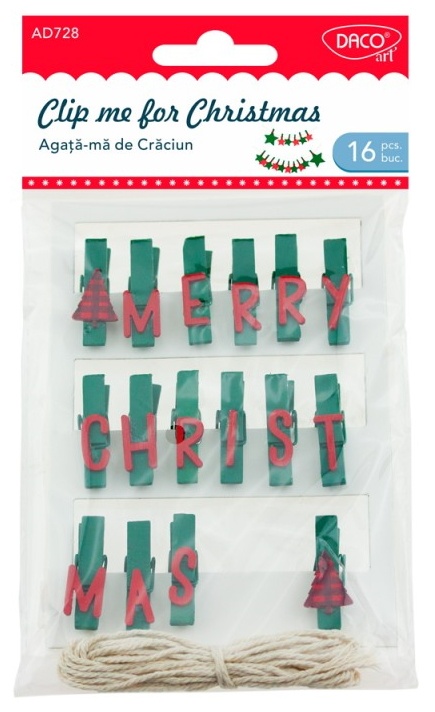 Setul contine 16 bucati de clesti de lemn de 3.5 cm, cu design modern, festiv, care pot servi in realizarea decorurilor de Craciun!