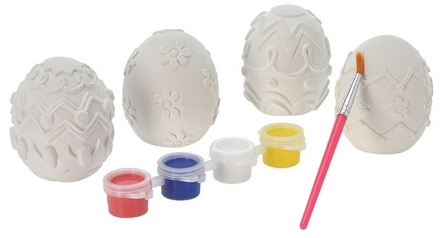 4 ouă, vopsele, perie