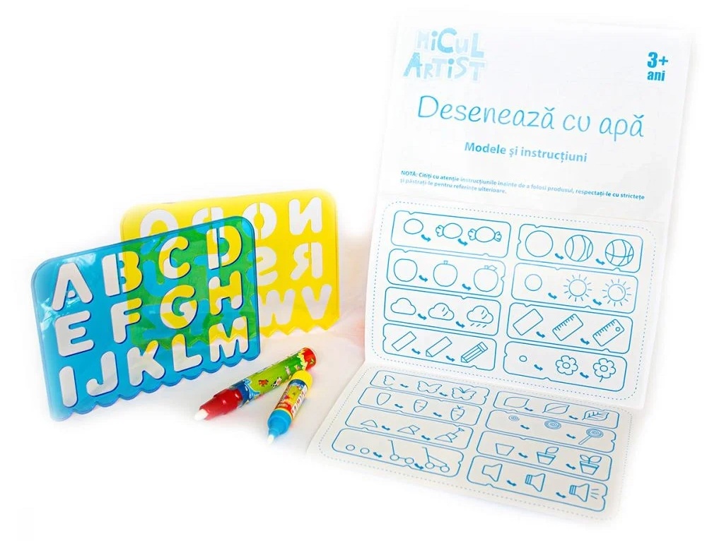 Deseneaza liber, foloseste sabloanele incluse ca sa scrii litere sau invata sa desenezi o multime de obiecte exersand modelele din brosura.