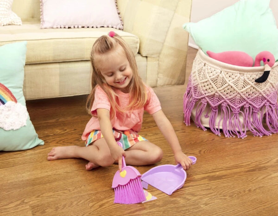 Design prietenos pentru copii: Măturile au peri moi, siguri pentru podele, iar mătura ușoară, de dimensiune pentru copii, poate fi manevrată cu ușurință în jurul mobilierului, obiectelor sau în colțuri greu accesibile.