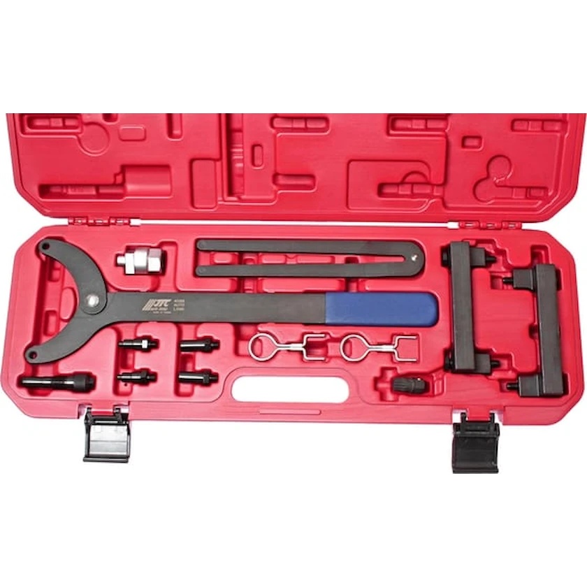 Setul de fixatori pentru arborele cu came pentru instalarea fazelor G.R.M. (VW, AUDI A4/A6/A8 3.2 FSI AUK/A6L 2.4 BDW) JTC 4086 este utilizat activ în mici ateliere auto și service-uri. Orice mecanic auto - fie profesionist, fie amator - va putea cu ușurință și rapiditate maximă să efectueze prinderea, ajustarea, precum și alinierea elementelor necesare ale sistemului de distribuție a gazelor al vehiculului. Prezența unui caz plastic în pachetul de livrare facilitează semnificativ depozitarea și transportul setului.