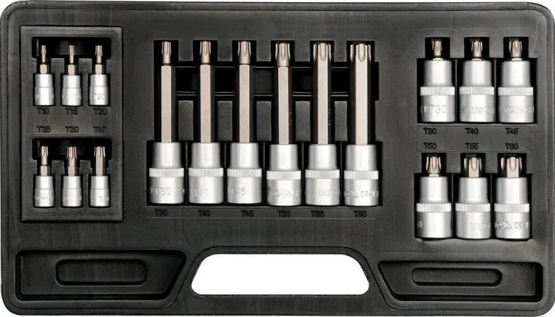 Tipul de capeteTorx 1/2" L=50 мм: T30, T40, T45, T50, T55, T60, Torx 1/2" L=100 мм: T30, T40, T45, T50, T55, T60, Torx 1/4" L=37 мм: T10, T15, T20, T25, T30, T40
