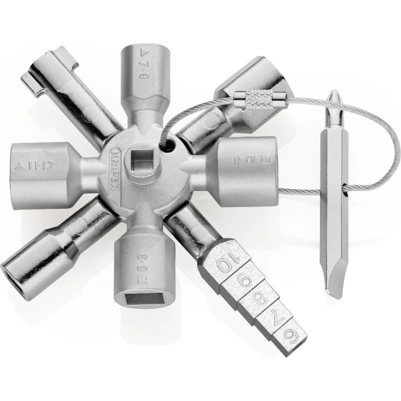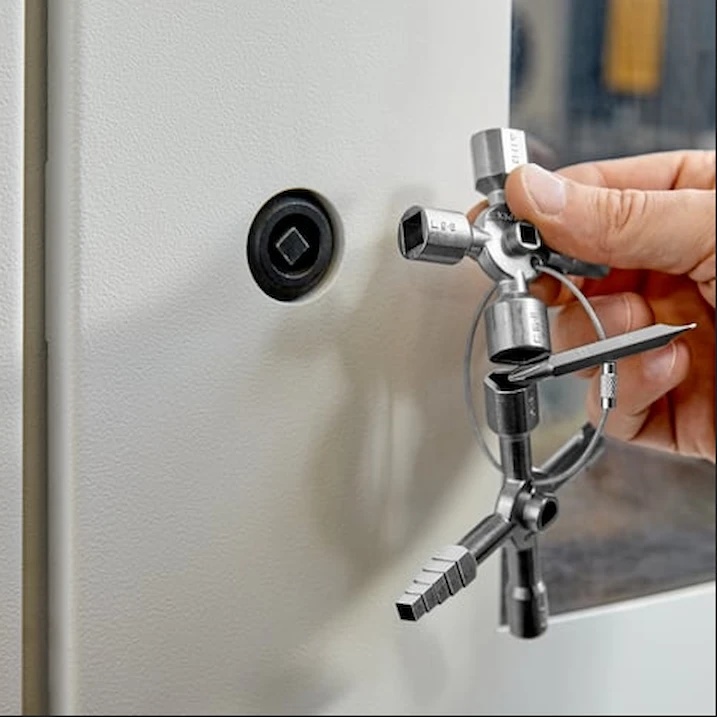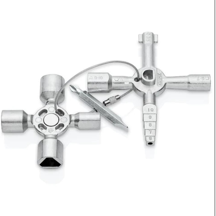 Cheie dublă universală pentru dulapuri electrice este un instrument specializat, utilizat pentru deschiderea și închiderea dulapurilor electrice sau a panourilor de distribuție. Această cheie este proiectată pentru a oferi un acces rapid și sigur la componentele electrice, facilitând lucrările de întreținere și reparație.