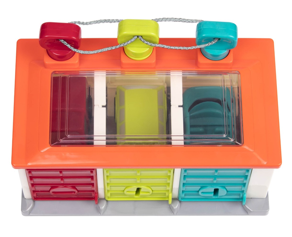 Acesta este un set grozav de joacă pentru a-ți prezenta copilului tău conceptul de cauză și efect. Puteți chiar să luați distracția de sortare din mers - garajul are un mâner pentru un transport convenabil. Doar asigurați mașinile înăuntru și sunteți gata!