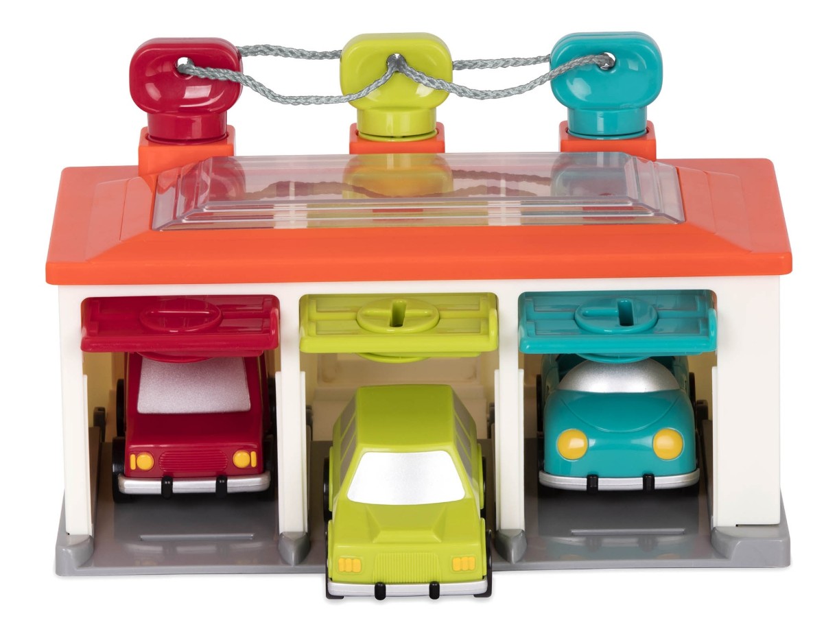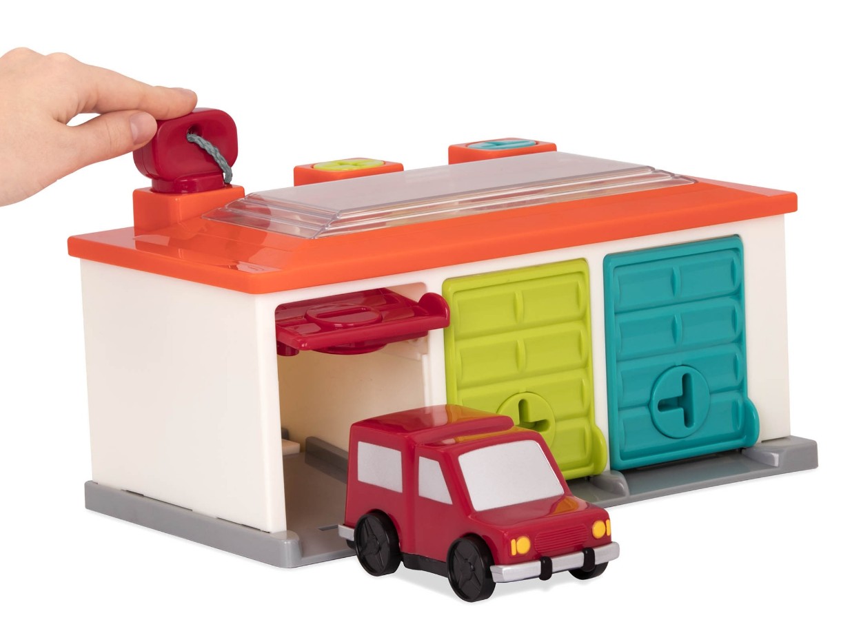Cu acest set de joacă interactiv pentru garaj, micuțul tău poate conduce mașini de jucărie și le poate parca. Așezați fiecare dintre cele 3 chei în găurile corespunzătoare pentru a deschide ușile - se potrivesc după culoare și formă pentru a dubla distracția educațională!