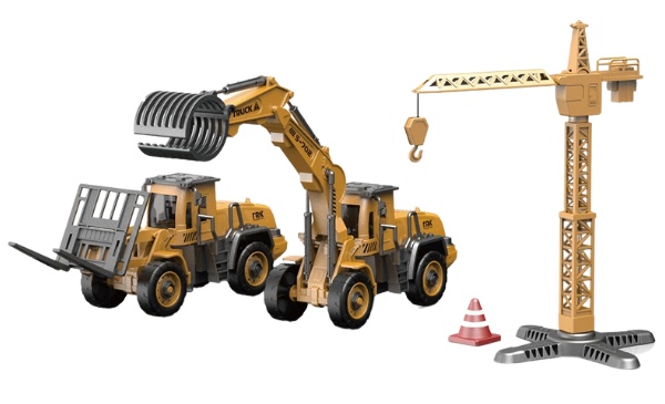Pornește la drum pe un adevărat șantier cu acest set realist și interactiv! 2 în 1 – setul conține două vehicule de construcții puternice cu mecanism de fricțiune, o macara turn și accesorii. Nu sunt necesare baterii pentru mișcare – împinge ușor și vor merge singure! Echipate cu lumini și sunete (claxon, pornire motor, mers înapoi, funcționare macara) pentru o experiență cât mai realistă.