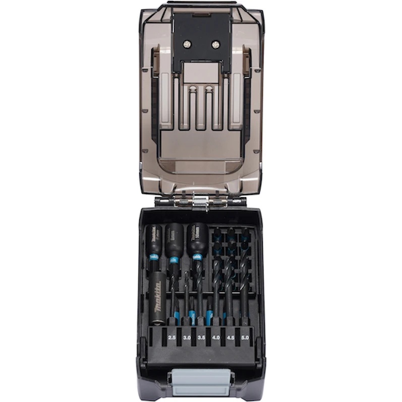 Set de 31 de biți pentru șuruburi Impact Black într-o cutie în formă de baterie XGT. Dispune de un buton cu o singură atingere pentru deschidere ușoară și acces la biți. Poate fi instalat pe un produs ca baterie falsă.