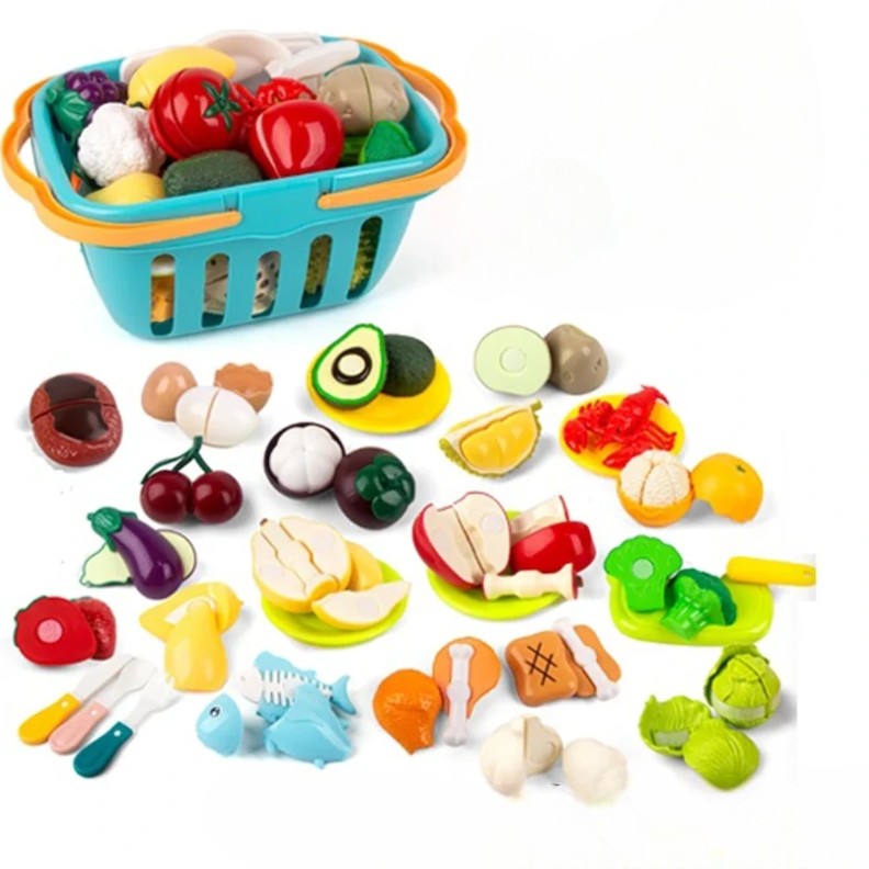 Coșul cu legume și fructe cu arici este o jucărie veselă și captivantă pentru jocurile de rol. Copiii pot „colecta”, „tăia” și „sorta” alimentele, dezvoltând motricitatea, atenția și imaginația.