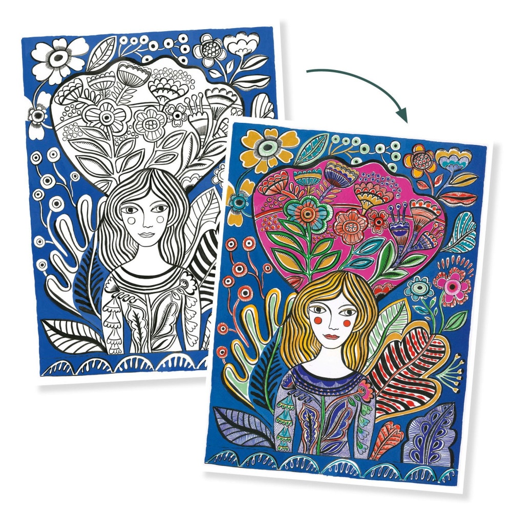 Set de pagini de colorat Djeco Floraison DJ08692