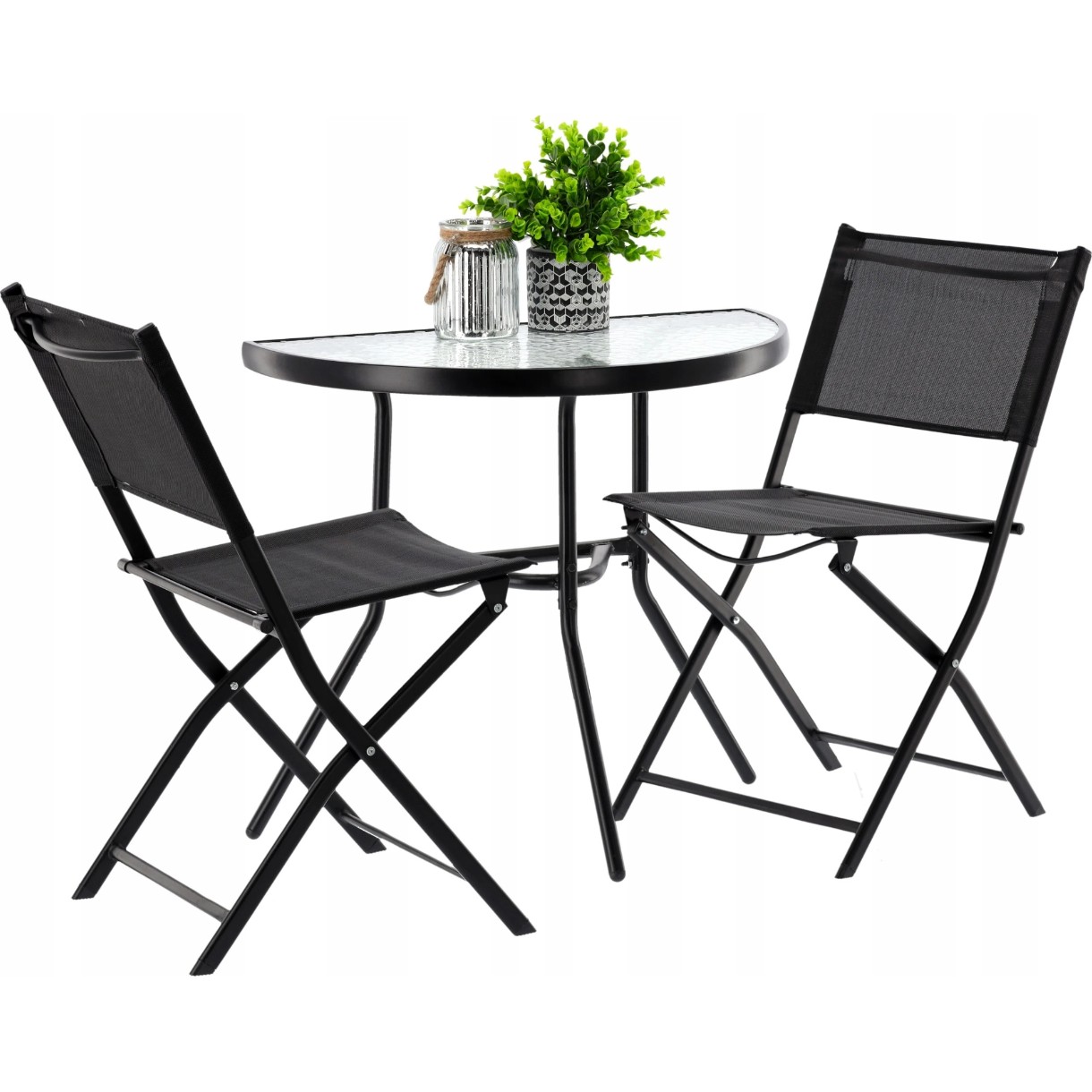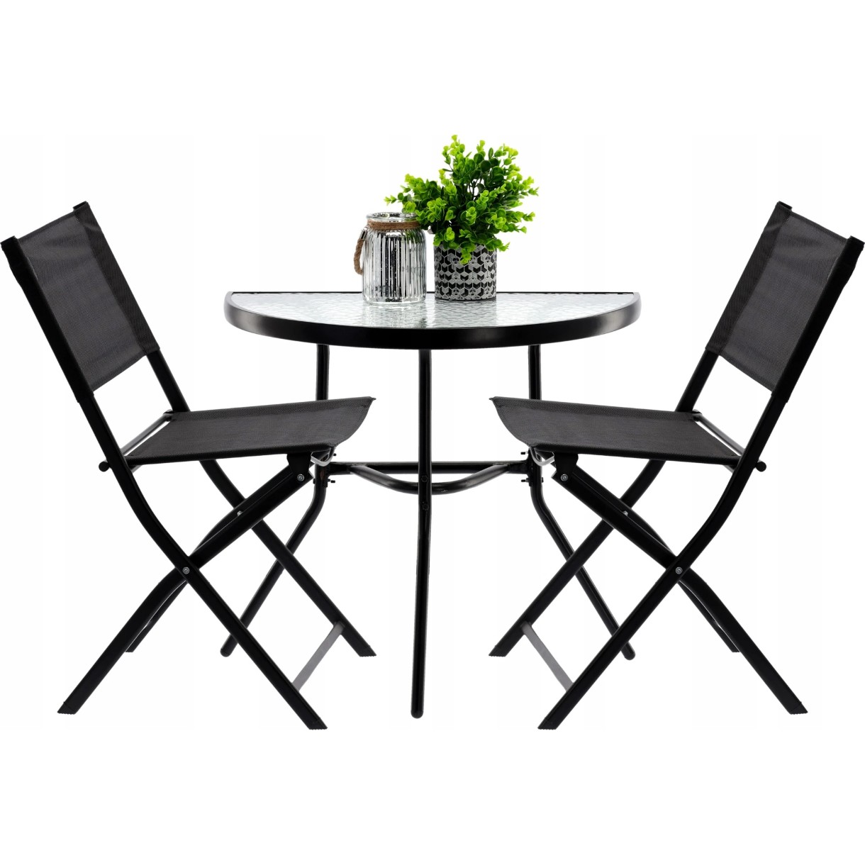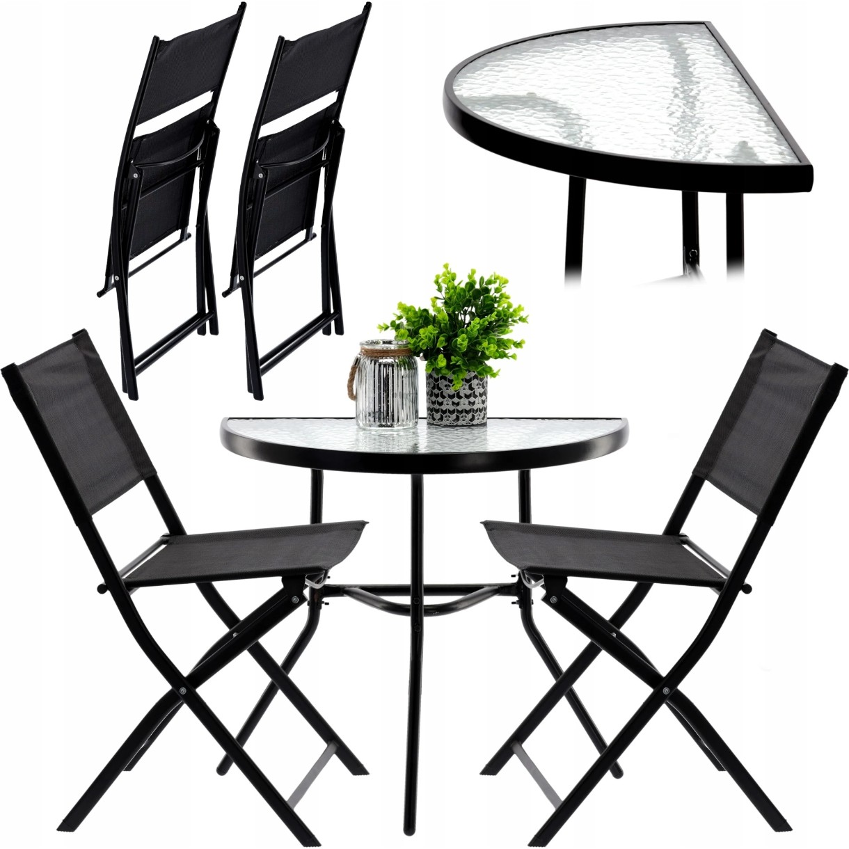 🪑 Set mobilier balcon – masă semicerc + 2 scaune pliabile | Garden Line | culoare neagră