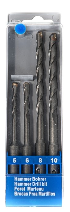 Set burghie SDS PLUS HYUNDAI HY-26001004 Toate piesele sunt confecționate din oțel aliat crom-vanadiu Scule robuste și fiabile destinate utilizării îndelungate Setul conține 4 burghii cu dimensiunile: 5x110 mm, 6x110 mm, 8x160 mm, 10x160 mm