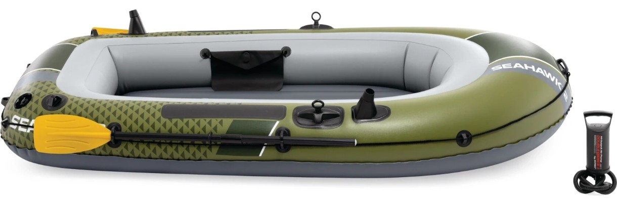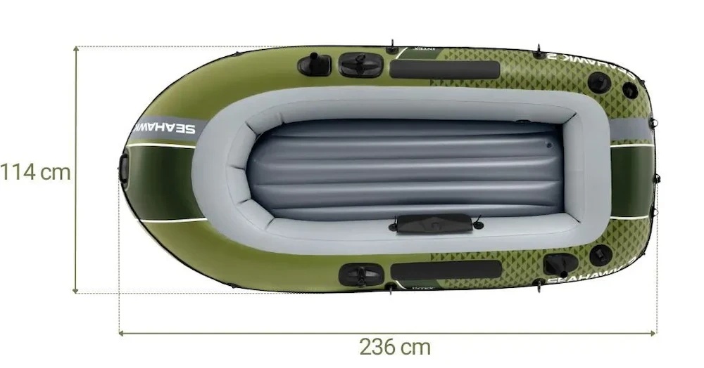 Porniți în aventuri pe apă cu barca gonflabilă Intex SEAHAWK 2, concepută pentru două persoane care apreciază durabilitatea și confortul. Ideală pentru pescuit, explorări sau pur și simplu relaxare pe lac, această barcă combină o construcție solidă cu funcții bine gândite pentru o experiență plăcută pe apă.