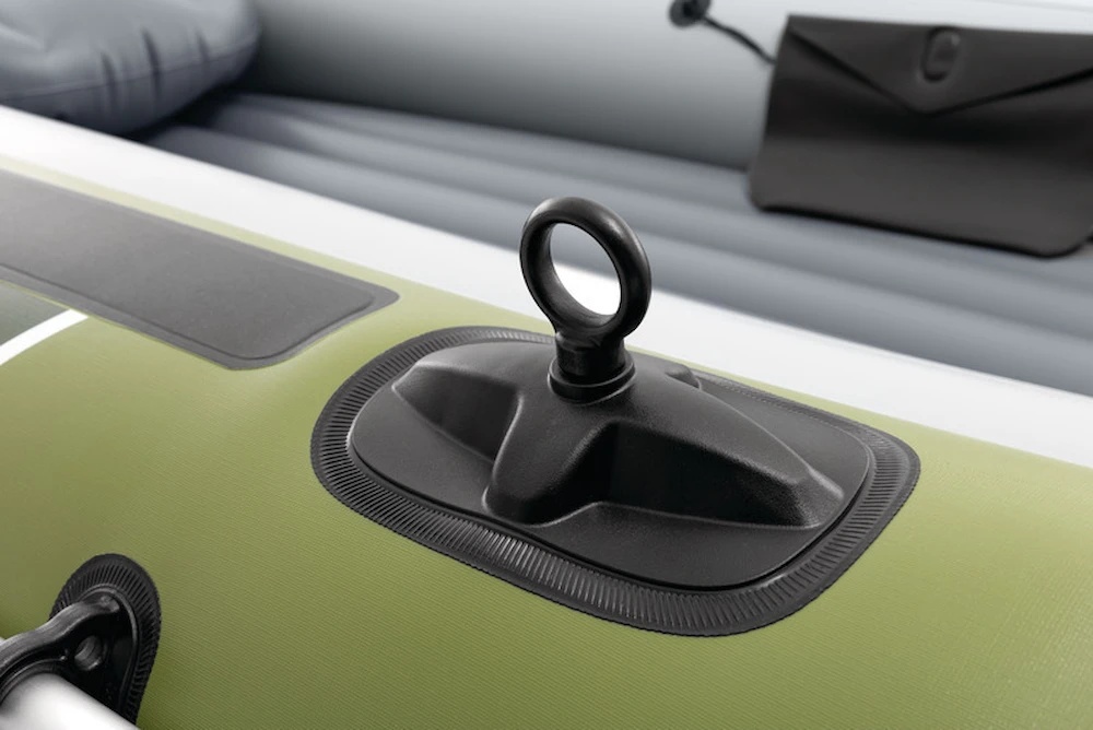 Banca este fabricată din PVC rezistent Super-Tough™, rezistent la șocuri și abraziune, iar cele patru camere de aer separate oferă siguranță suplimentară pe apă. Podeaua gonflabilă I-Beam conferă rigiditate și stabilitate, iar mânerele și chinga de siguranță fac manevrarea bărcii ușoară și sigură.