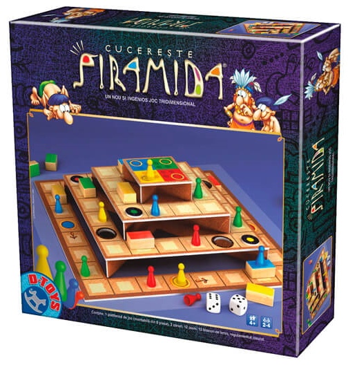 Jocuri de strategie si societate in format 3D - Cucereste Piramida. Cucereste piramida este un joc ingenios cu pioni, blocuri din lemn si zaruri. Utilizand pionii si blocurile colorate, concurentii trebuie sa urce pana in varful piramidei. Un nou joc ingenios 3D care te calauzeste in lumea misterioasa a piramidelor. Incearca-ti norocul, invata sa gandesti tactic si vei fi primul care ajunge pe varful piramidei. Strategie si multa distractie pe fiecare treapta a piramidei.