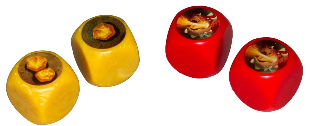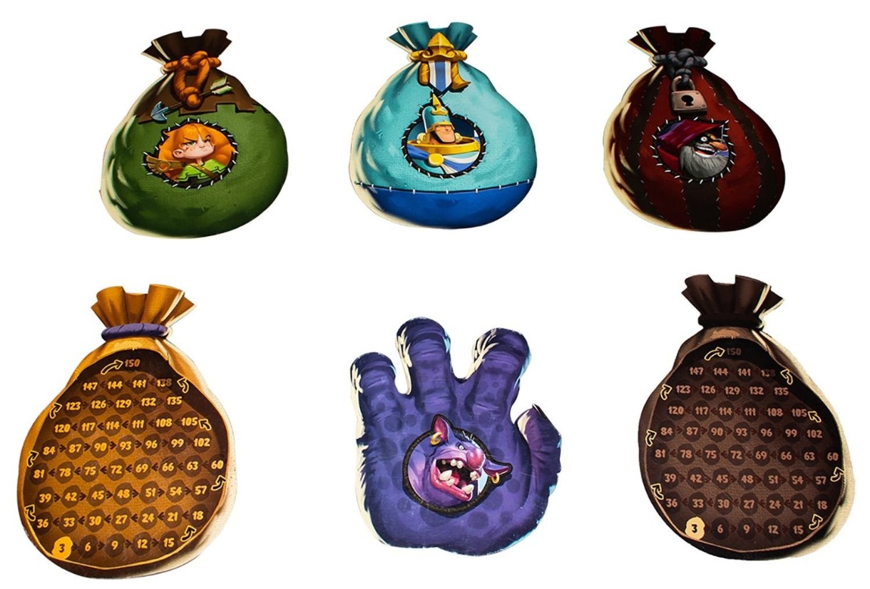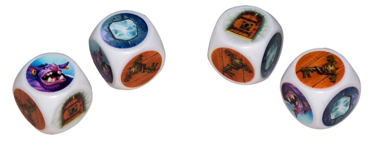 In set60 de diamante, 50 de pepite de aur, 5 genți de drumeție, laba troll, 8 cuburi, reguli