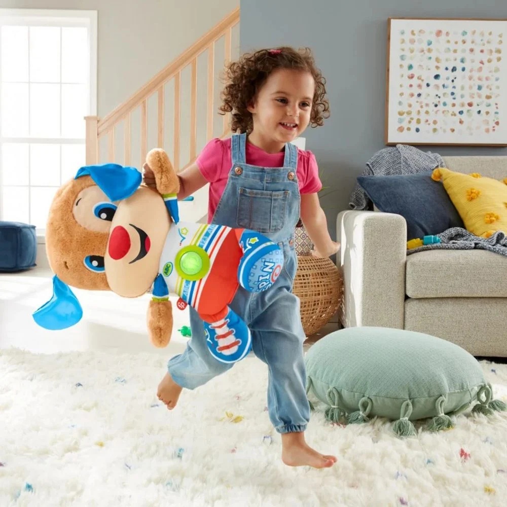 Primul cel mai bun prieten al bebelusului este si mai mare acum, jucaria muzicala de plus Laugh & Learn® So Big Puppy™ de la Fisher-Price® interactiva in limba romana! Acest catelus deosebit de mare are cantece, sunete si expresii activate de miscare, pentru a-i incuraja pe cei mici sa se puna in miscare.