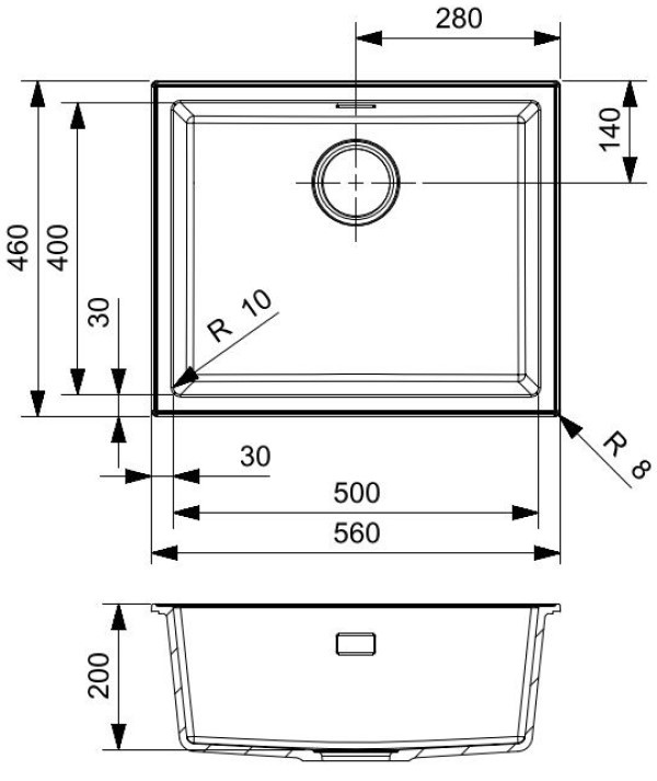Adâncime cuvă200 mm
