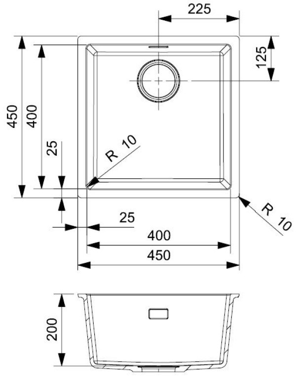 Dimensiuni cuvă400х400 mm