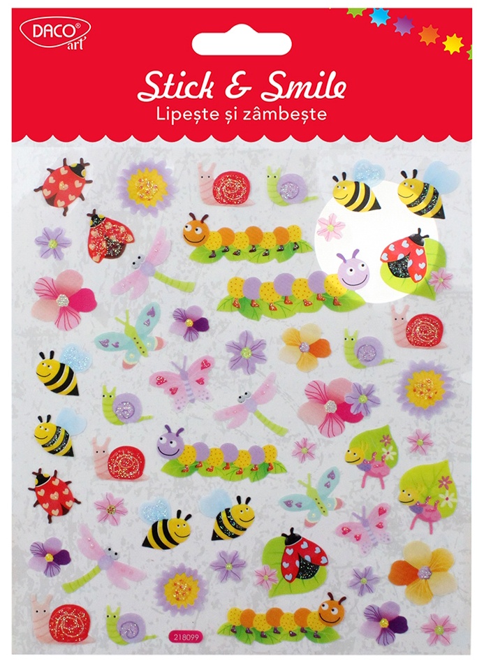 Îmbogățește momentele de creativitate cu abțibildul Mici vietăți Lipește și zâmbește de la DACOart! Aceste abțibilduri din folie, cu design vesel și plin de culoare, sunt perfecte pentru a adăuga un plus de distracție în activitățile tale educative și recreative.