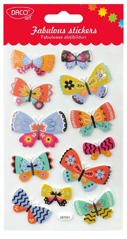 Dă viață proiectelor tale creative cu abțibildul Fluturi Fabuloase de la DACOart! Aceste abțibilduri din spumă sunt perfecte pentru a adăuga un efect tridimensional decorurilor și creațiilor tale. Fie că le folosești pentru scrapbooking, felicitări handmade, personalizarea agendelor sau alte proiecte artistice, fluturii colorați vor aduce un plus de farmec și originalitate.