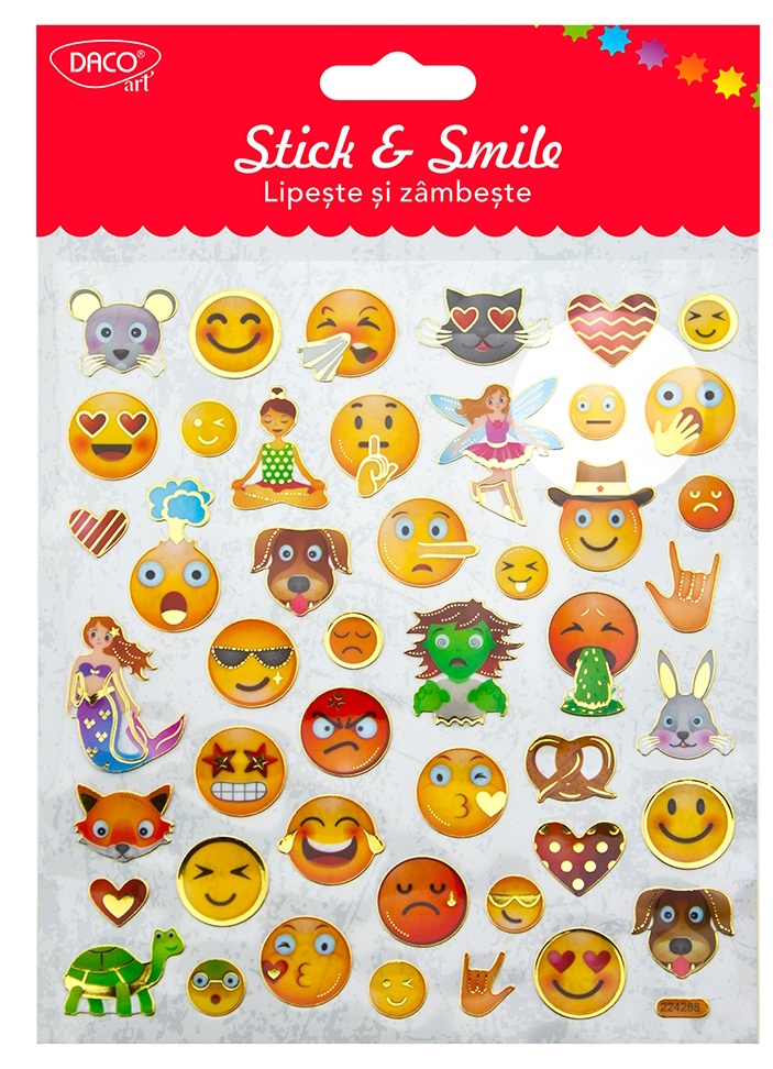 Setul conține 1 coală de 15 cm x 16.6 cm, plină de emoticoane simpatice și colorate, gata să îți înfrumusețeze ziua. Ușor de aplicat pe diverse suprafețe, aceste abțibilduri sunt ideale pentru școală, birou sau proiecte creative.