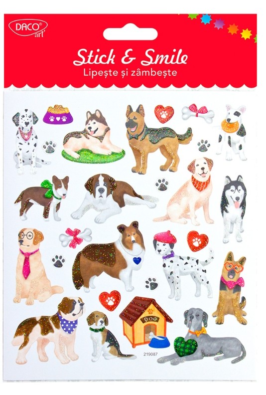 Împărtășește iubirea pentru câini și adaugă un strop de veselie proiectelor tale cu abțibildul Câini Lipește și zâmbește de la DACOart! Aceste abțibilduri din hârtie sunt perfecte pentru a personaliza caietele, agendele, felicitările sau orice alt obiect creativ. Cu imagini drăgălașe și jucăușe de câini, acest set va aduce o notă de căldură și distracție fiecărei creații.