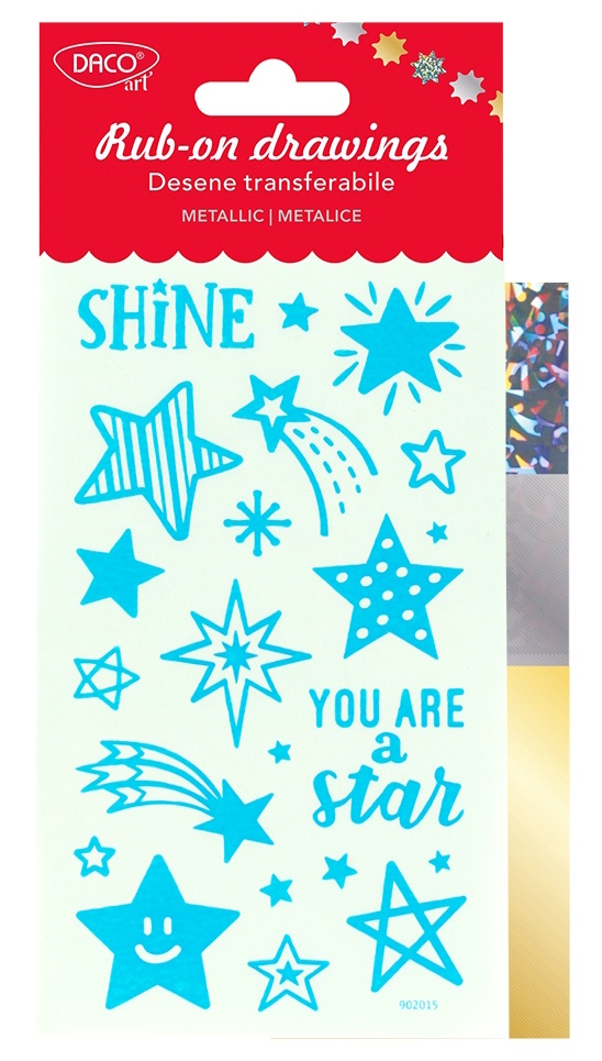 Adaugă un plus de strălucire și eleganță proiectelor tale cu abțibildul Shine Desene transferabile de la DACOart. Acest set conține o coală cu modele variate și trei folii strălucitoare, perfecte pentru a crea efecte metalizate spectaculoase pe diferite suprafețe.