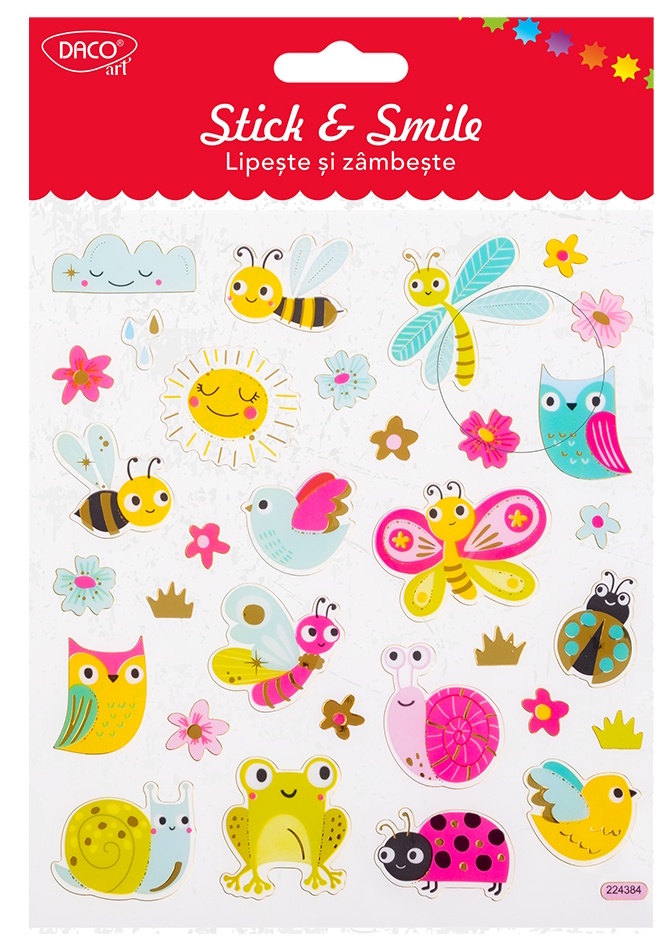 Adaugă un strop de naturalețe și veselie proiectelor tale cu abțibildul Gâze Lipește și Zâmbește de la DACOart! Aceste autocolante încântătoare sunt inspirate de frumusețea micilor gâze și oferă un design jucăuș și plin de culoare, perfect pentru a înfrumuseța obiectele tale preferate.