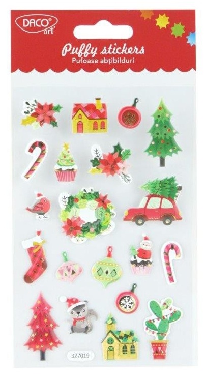 Set abtibilduri 3D (in relief) cu decoratiuni de Craciun. Potrivite pentru a personaliza obiecte decorative, felicitari, cadouri, etc.