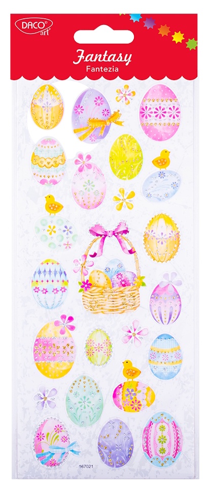 Împodobește-ți sărbătorile cu abțibildurile Ouă Fantezia de la DACOart, un set rafinat și plin de farmec! Aceste abțibilduri din folie cu accente de glitter auriu și argintiu sunt perfecte pentru a adăuga un efect strălucitor și elegant decorurilor tale de Paște sau pentru diverse proiecte creative. Setul conține o coală de 10 cm x 23 cm, cu ouă decorate cu detalii de glitter, ideale pentru personalizarea felicitărilor, cadourilor sau obiectelor decorative.