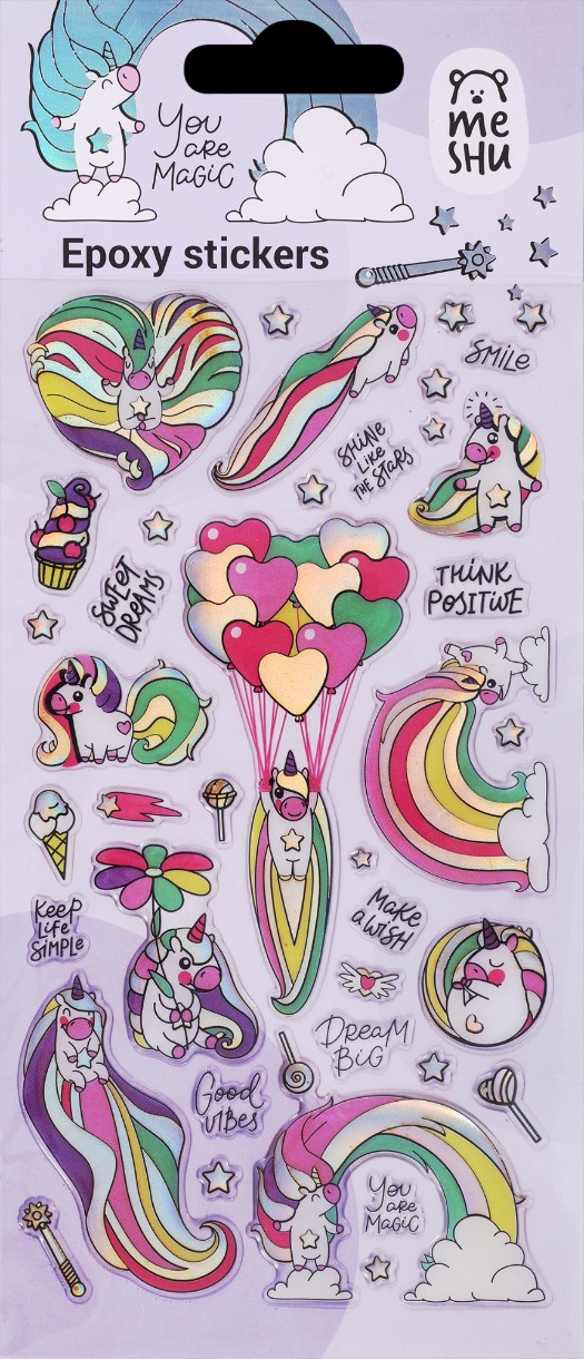 Meshu Rainbow Unicorn (MS_57667) sunt stickere gel decorative pe o foaie de 10×23 cm, ideale pentru a adăuga un plus de culoare, textură și distracție proiectelor tale creative. Aceste autocolante 3D au un aspect voluminos și o textură plăcută la atingere, fiind perfecte pentru decorarea jurnalelor, agendelor, scrapbooking‑ului, felicitărilor sau obiectelor personale. Modelele inspirate de unicorni și curcubeie aduc o notă veselă și magică creațiilor tale.