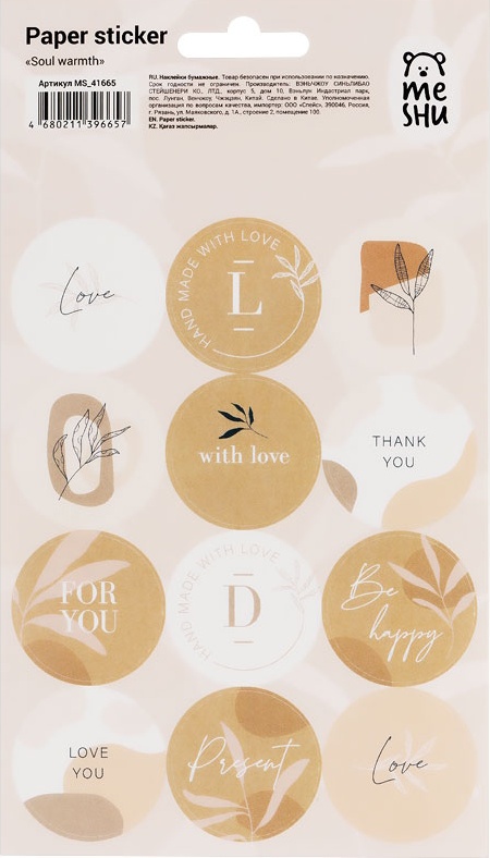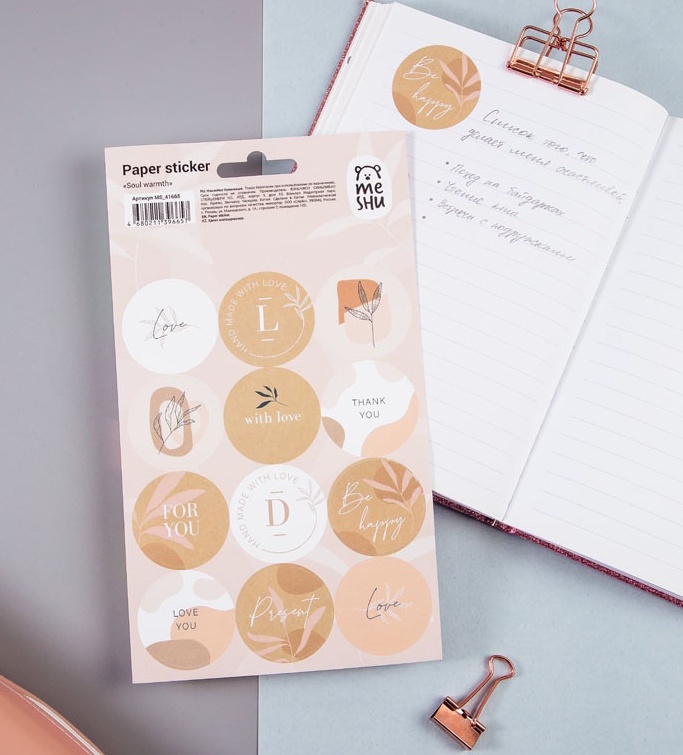 Meshu Soul Warmth este un set de stickere din hârtie autoadezivă pe o foaie de 12 × 21 cm, conceput pentru a adăuga un plus de stil și creativitate proiectelor tale. Aceste autocolante sunt ideale pentru decorarea jurnalelor, agendelor, felicitărilor, obiectelor de papetărie, albumelor scrapbooking sau altor creații DIY, iar modelele moderne și luminoase transformă procesul creativ într‑o activitate plăcută și inspiratoare.