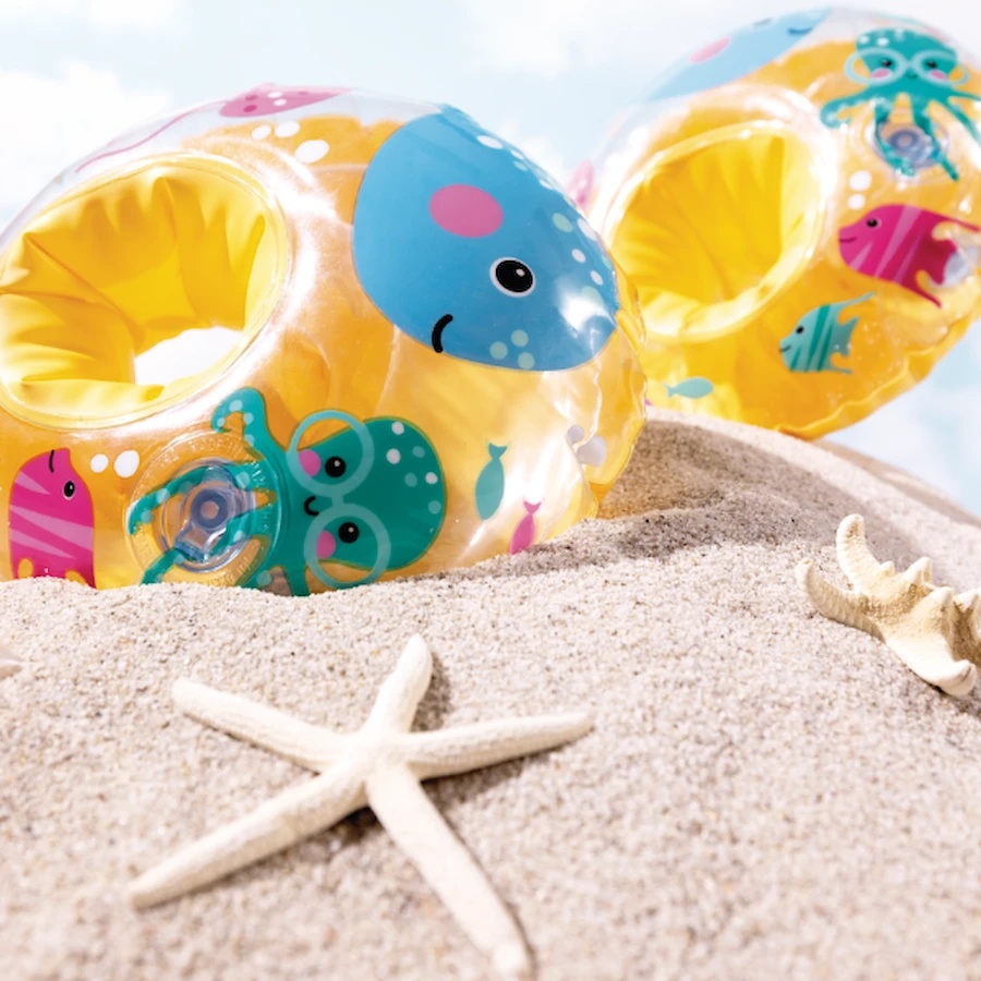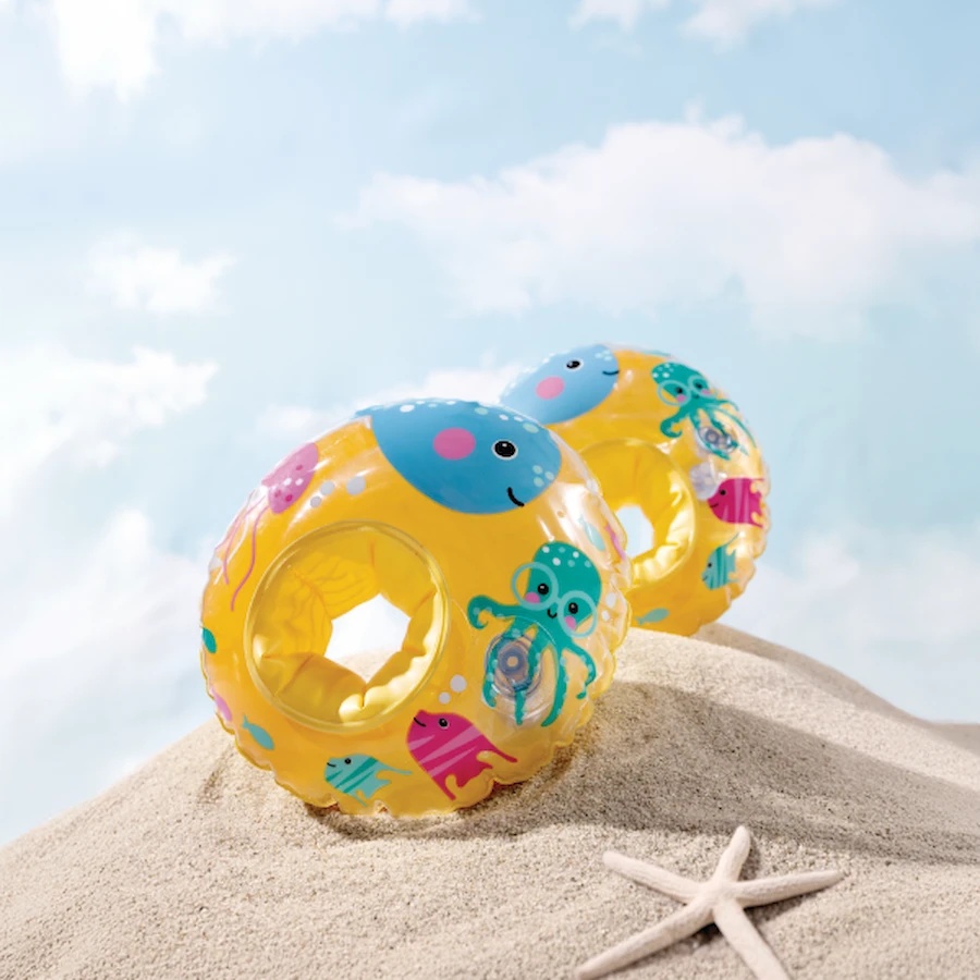 Accesoriile colorate pentru înot „Prietenii Mării” sunt destinate copiilor mici care fac primii pași în apă. Ele sunt decorate cu imagini vesele ale locuitorilor mării și sunt fabricate din vinil rezistent. Fiecare cotiță este compusă din două camere de aer pentru o siguranță și stabilitate sporită pe apă. Cotițele ajută copiii să se simtă mai încrezători în primele încercări de înot, dar nu reprezintă un mijloc de salvare — este întotdeauna necesară supravegherea adulților.