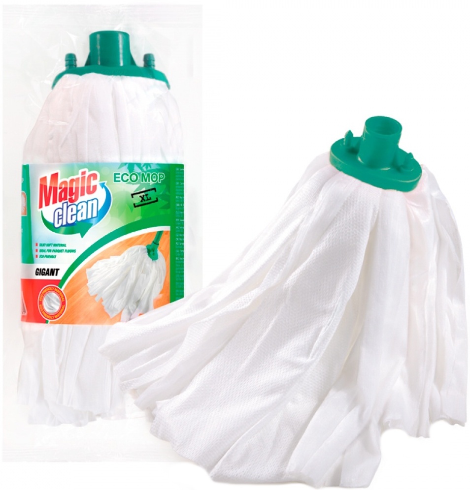 Rezerva Mop Magic Clean Eco Gigant XL este realizată din vâscoză cu absorbție ridicată, fiind concepută pentru curățarea eficientă a suprafețelor foarte murdare. Fibrele din vâscoză colectează rapid apa, praful și murdăria, ajutând la îndepărtarea petelor persistente fără a deteriora pardoseala.